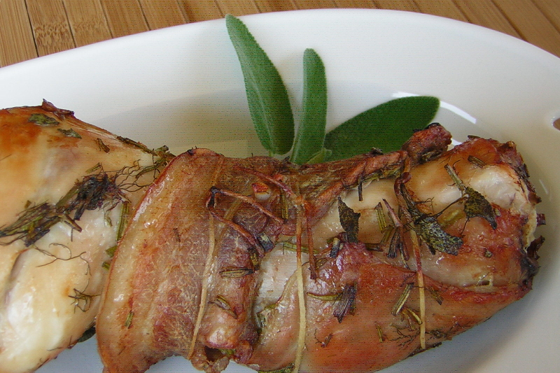 Il coniglio in porchetta rappresenta una ricetta tipica della gastronomia marchigiana. Si tratta di un secondo di carne ricco e saporito. Ingrediente indispensabile per ottenere una pietanza nel rispetto della tradizione è il finocchietto selvatico, che rende questo piatto particolarmente profumato.