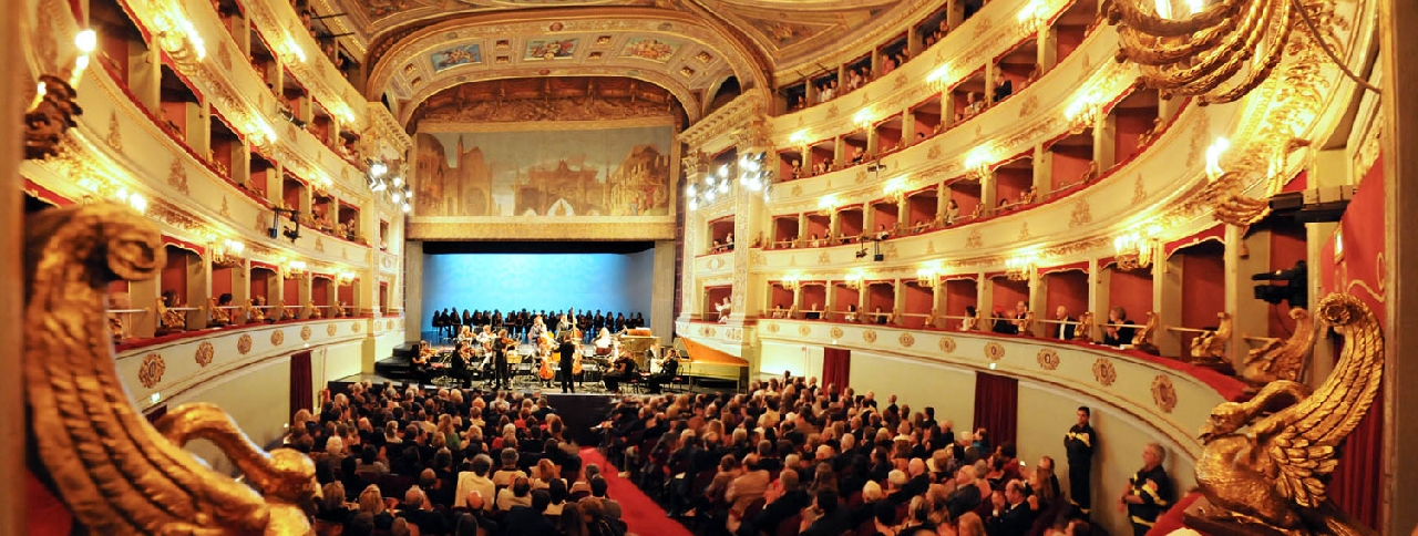 Il Teatro Pergolesi di Jesi è uno dei simboli più importanti di arte e cultura nelle Marche. La progettazione fu affidata a due architetti: il fanese Francesco Maria Ciaraffoni e l’imolese Cosimo Morelli che decise per l’ampia curva ellittica della sala, da cui dipende la sua ottima acustica. Le decorazioni vennero affidate a due famosi artisti neoclassici: l’architetto Giovanni Antonio Antolini, al quale spettò la progettazione scenico-arredativa del teatro, e il pittore Felice Giani, che insieme all’ornatista Gaetano Bartolani e agli aiuti Francesco Micarelli e Giuseppe Guiducci dipinse le Storie di Apollo sulla volta della sala.